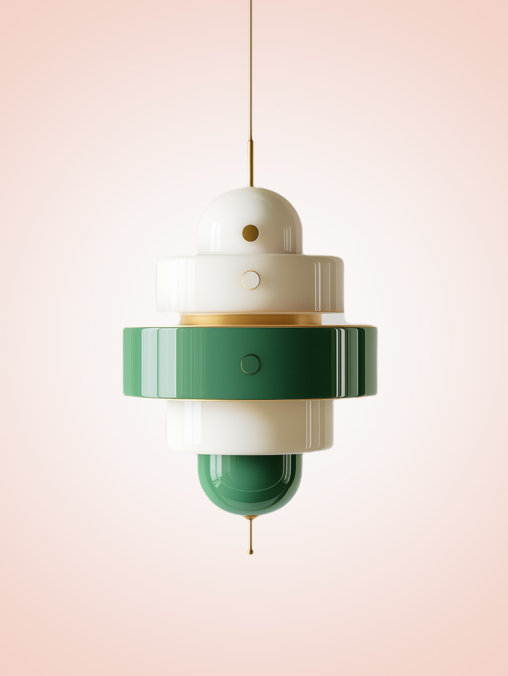 DESIGN FEATURES The chandelier showcases a bold, circular frame with a striking green outer rim, accented by a radiant pink band and a central white diffuser that emits a soft, glowing light. Its petal-like structure, inspired by a blooming flower or cosmic flare, features multiple layered segments that create a mesmerizing play of light and shadow.